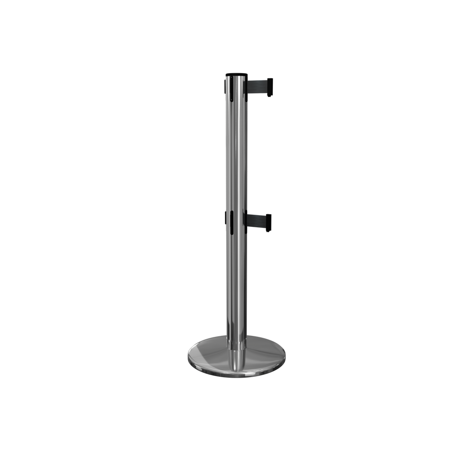 Polished Stainless Queue Pro Twin Retractable Stanchions | 16 Foot ADA Belt